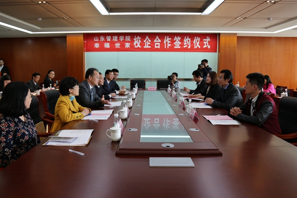 徐险峰表示,山东管理学院开设老年服务与管理专业符合老龄化的社会严峻发展形势,设置的专业课程紧贴养老产业人才市场需求,形成的专业链涵盖了养老产业的绝大部分职业岗位群,可较好地满足养老产业发展对各种人才的需求。山东管理学院与幸福世家联合打造“幸福世家订单班”进行人才定向培养,设立幸福世家奖学金,并在幸福世家建立学生实践基地,不仅为学生提供了理论与实践相结合的机会,为培养复合型人才奠定实践基础,而且为幸福世家提供了养老服务人才,幸福世家将优先录用“订单班”的毕业生。未来,幸福世家对校企合作这种教学模式将给予大力支持,采取各种措施,不断提高合作的层次、扩大合作的范围、挖掘合作的潜力,为合作的日益加深和巩固提供不遗余力的支持。