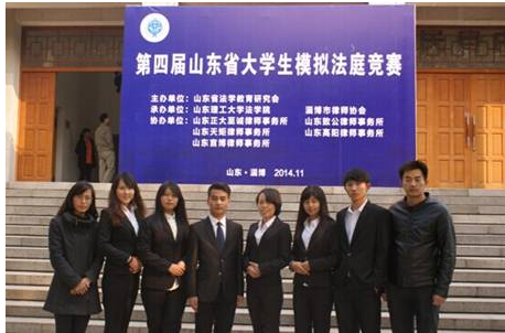 第四届山东省大学生模拟法庭大赛由山东省法学会法学教育研究会主办,山东理工大学法学院、淄博市律师协会承办,评委由法官、检察官、律师等从事法律相关工作的专业人士组成。参赛队伍来自山东大学、山东大学威海分校、烟台大学、青岛大学、山东农业大学等共24所高校。其中,除我校队伍由专科生组建,其他队伍均由本科生组建。